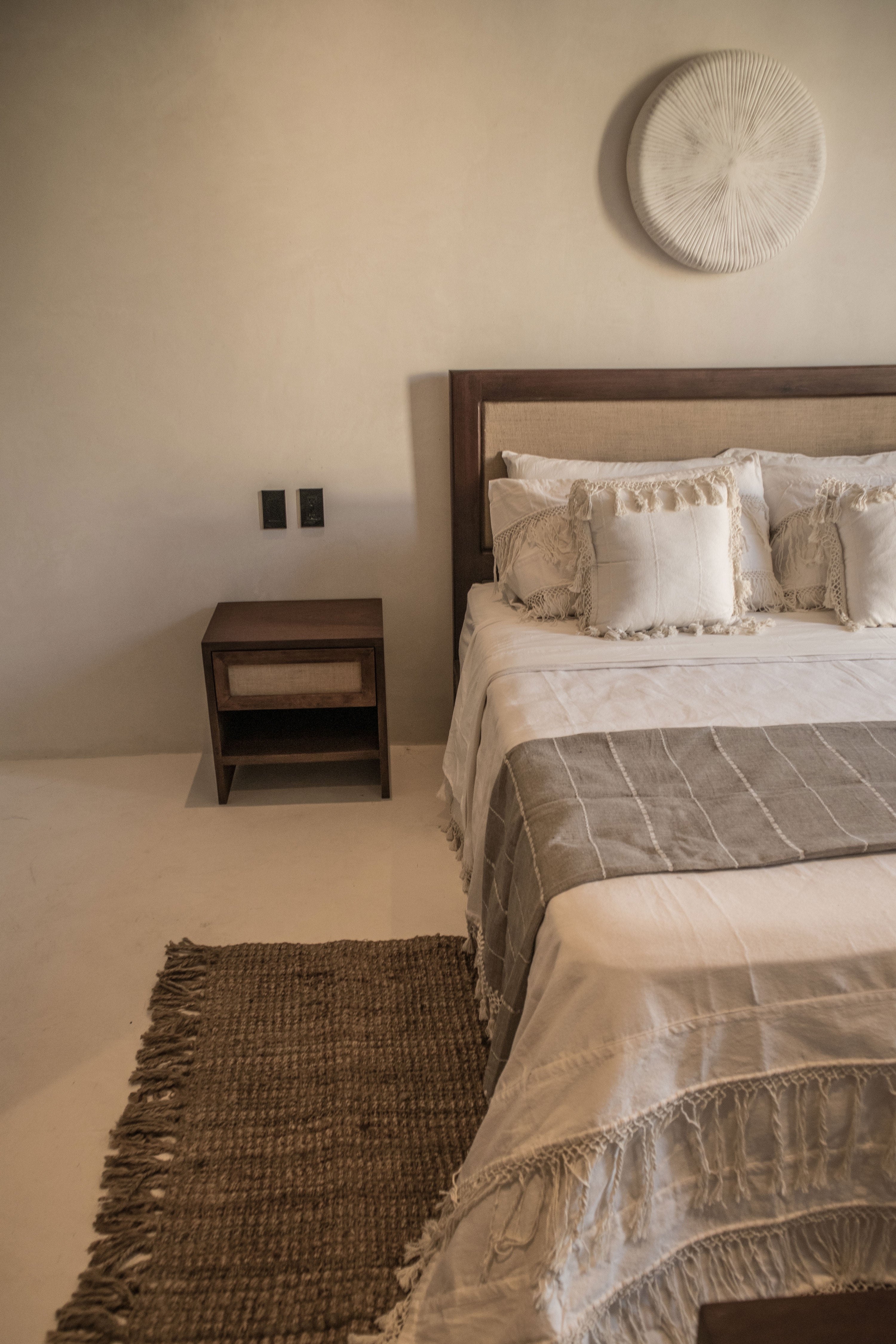 777 is a beautiful project located in Loom Zama, within Aldea Zamá in Tulum, Quintana Roo, Mexico. We collaborated with the builder to create a turnkey package that included furniture, decor, linens, accessories, and some appliances for 70% of the units in the development. The furniture collection was made using solid parota wood, reclaimed dock wood, and parota veneers. Each client could personalize both the furniture and the decor for their apartment, choosing from the different options available in our collection.